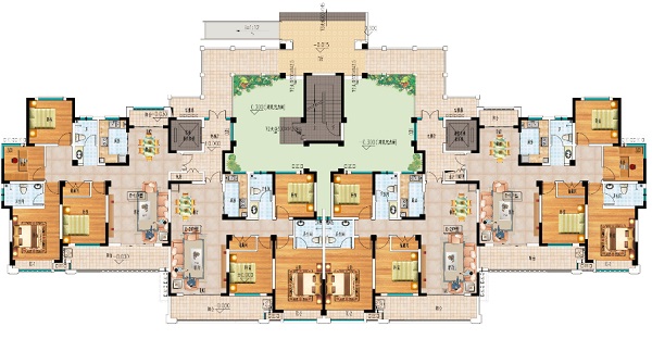 突出入戶大堂、小區(qū)入口。廣場地面雕刻出方磚鋪地,運(yùn)用人工分色處理,打磨噴涂上色;點(diǎn)綴一些汽車、行人、休憩椅、雕塑小品及各種植物等環(huán)境配套設(shè)施使商業(yè)廣場更添休閑味道,環(huán)境更加豐富。并在廣場設(shè)置地?zé)艏盁艄庖栽黾幽P鸵咕靶ЧT诳傮w協(xié)調(diào)的基礎(chǔ)上,盡量提高空間感和視覺效果,按照實(shí)際施工尺寸適當(dāng)拉寬環(huán)境及建筑樓距,適當(dāng)放大中心園林空間,以獲得更感性合理的模型視覺(多設(shè)置公園椅、庭園燈、樹木等),充分體現(xiàn)出城市自然與人文環(huán)境相互融合的特性。