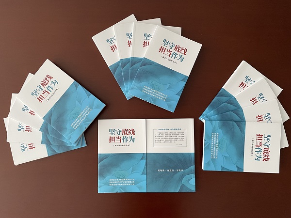 在這樣的工作節點編印發放廉潔從業教育讀本,意在引導和教育全體黨員、干部職工知敬畏、存戒懼、守底線,在安徽省生態環境產業集團高質量發展和安徽鹽業地產集團、安徽省健康養老投資公司、安徽省城市更新投資公司高質量發展進程中堅守底線、擔當作為。
